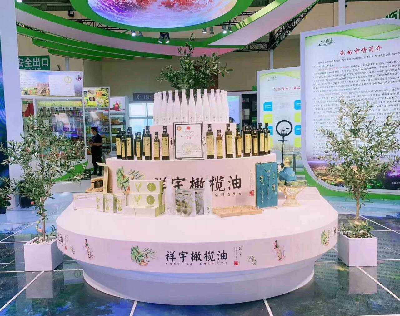 在本屆蘭洽會上,祥宇公司不僅展示了特級初榨橄欖油、橄欖茶、橄欖菜、橄欖果、橄欖護(hù)膚品、橄欖保健品、