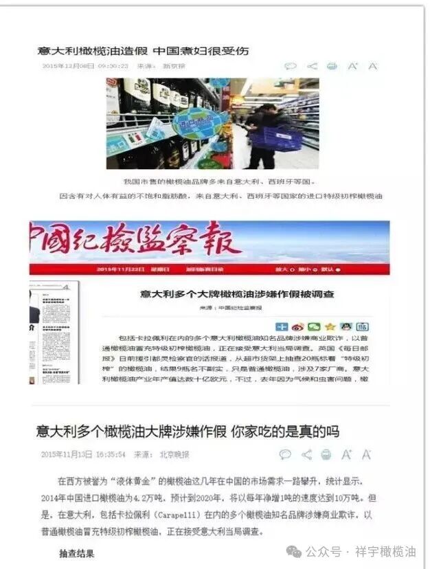 等級造假:將“精煉橄欖油”“調和橄欖油”,偽造檢測報告,冒充“特級初榨”,欺騙消費者。